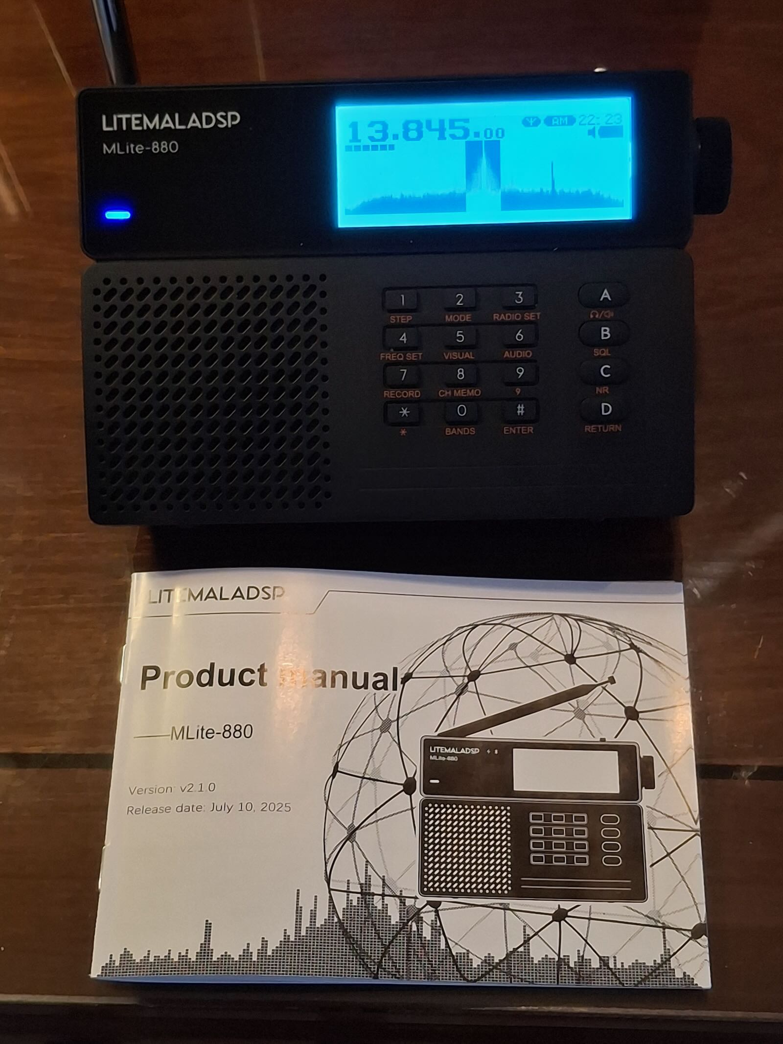 RADIOCHIEF.RU on YouTube provides a demonstration of the MLite-880, comparing it with an ICOM IC-R20 and a DSP-3. He notes that while there are flaws in the 880 they appear to be fixable via firmware upgrades. In the downloads section of the elecevolve website we see version 1.2 dated 6 February 2026. The unit delivered here has 1.1 The printed manual shows “v2.1.0 Release date July 10, 2025”. I’m not aware of videos or other online presence of the ML 880 before January 2026.