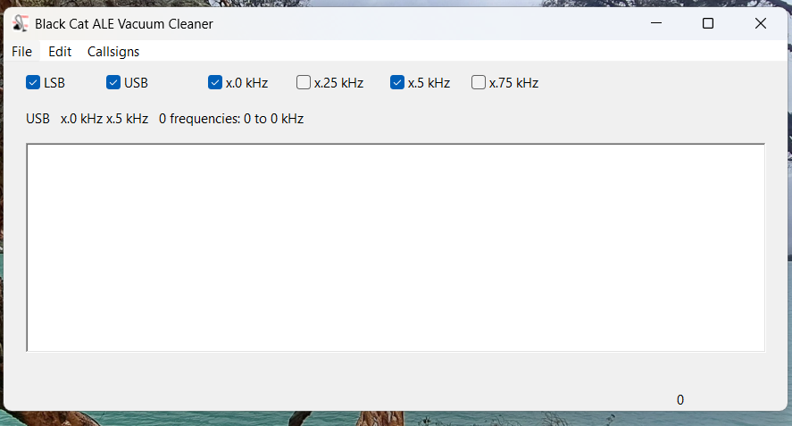 Run by longtime DXer Chris Smolinski, Black Cat Systems is a provider of over two dozen quality software programs for radio hobbyists. The one we’re interested in is the Black Cat ALE Vacuum Cleaner. The name describes exactly what it does. The user feeds it a large number of SDR spectrum recordings, and the Vacuum Cleaner sucks up the ALE DX and lists them in a file.