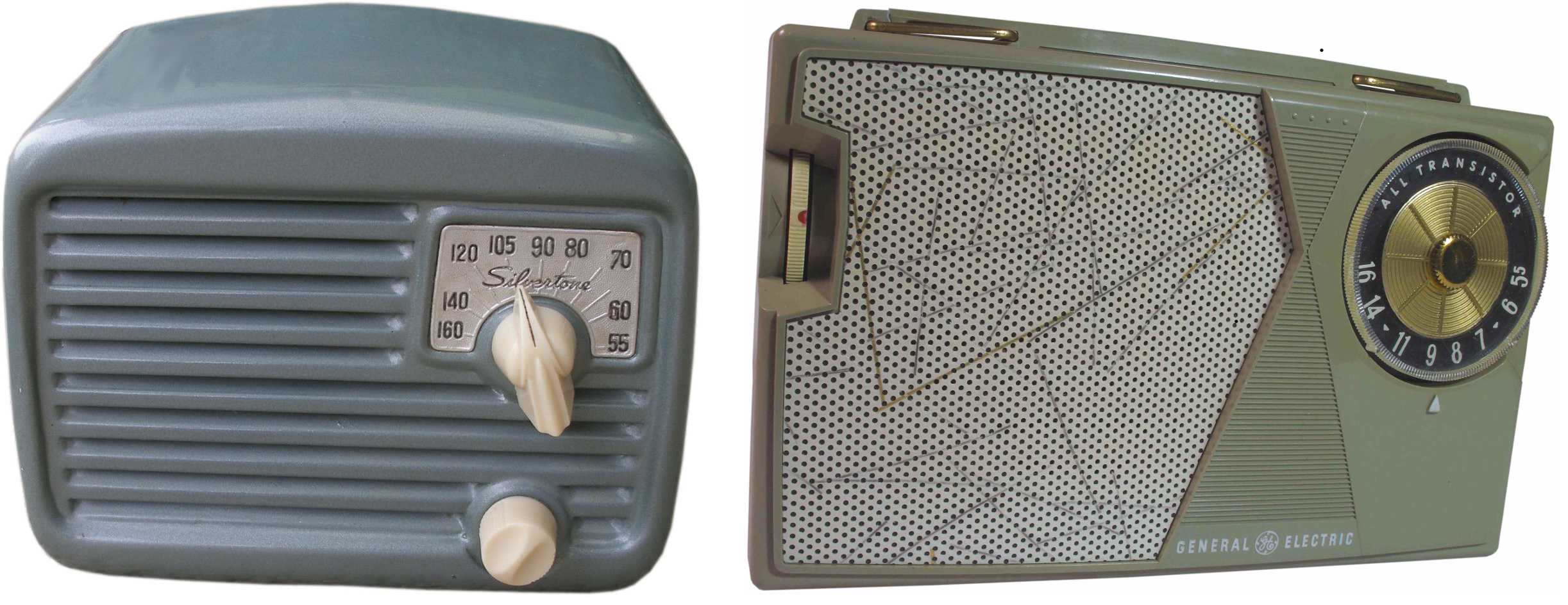 Right: General Electric Model P755A Transistor Portable (1957, $19.95)