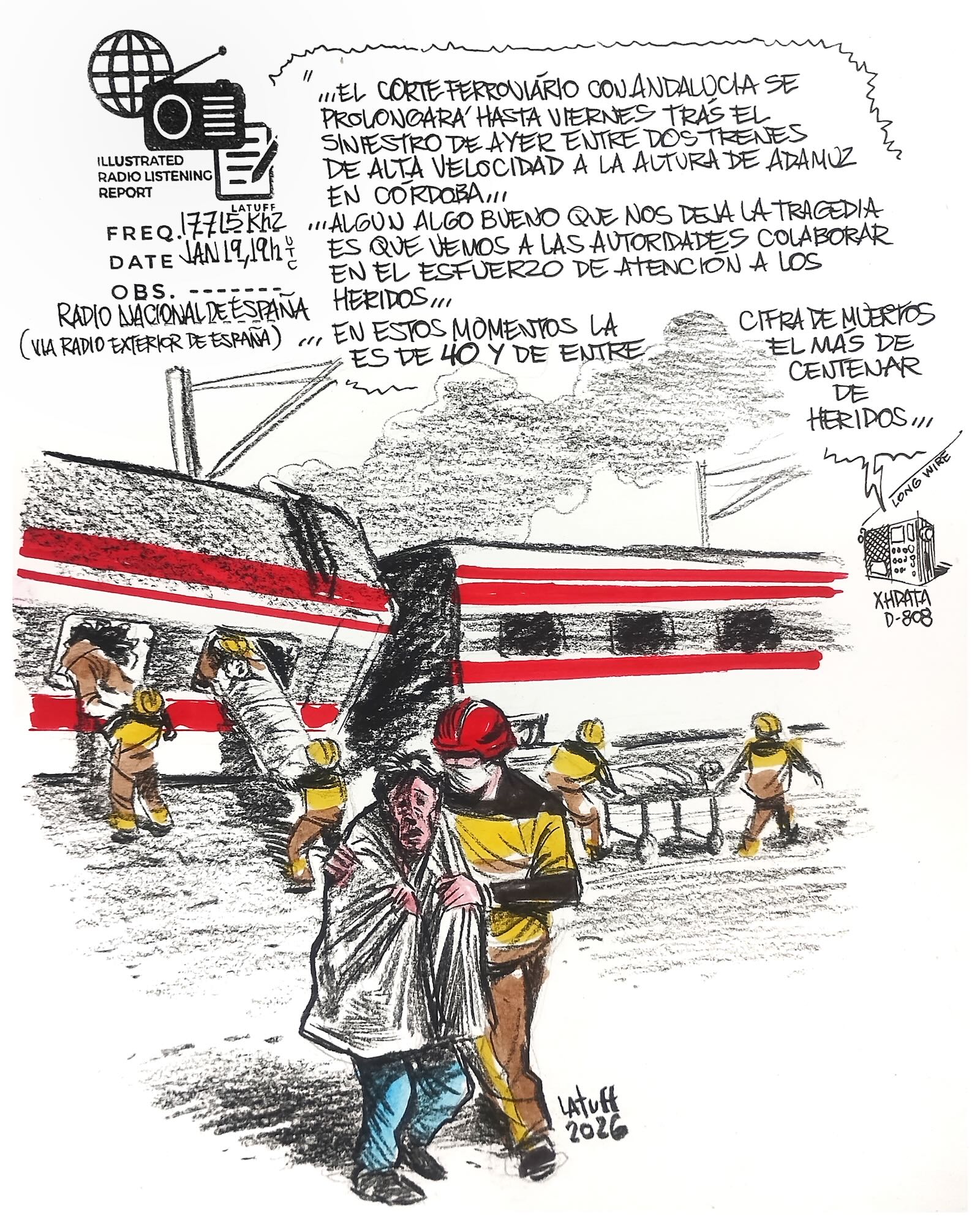 Many thanks to SWLing Post contributor and noted political cartoonist, Carlos Latuff, who shares the following illustrated radio listening report of a recent Radio Exterior de España broadcast.