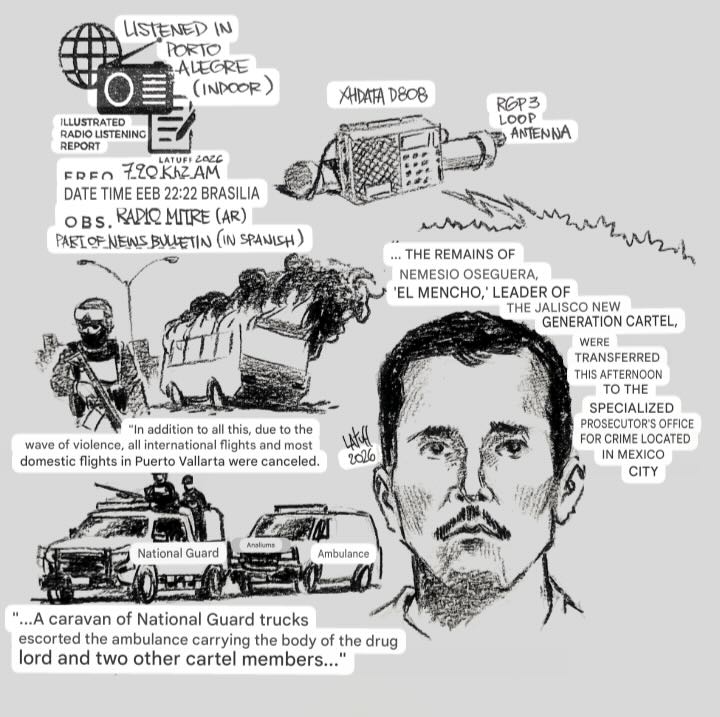 Many thanks to SWLing Post contributor and noted political cartoonist, Carlos Latuff, who shares the following illustrated radio listening report of a recent Rádio Mitre broadcast.