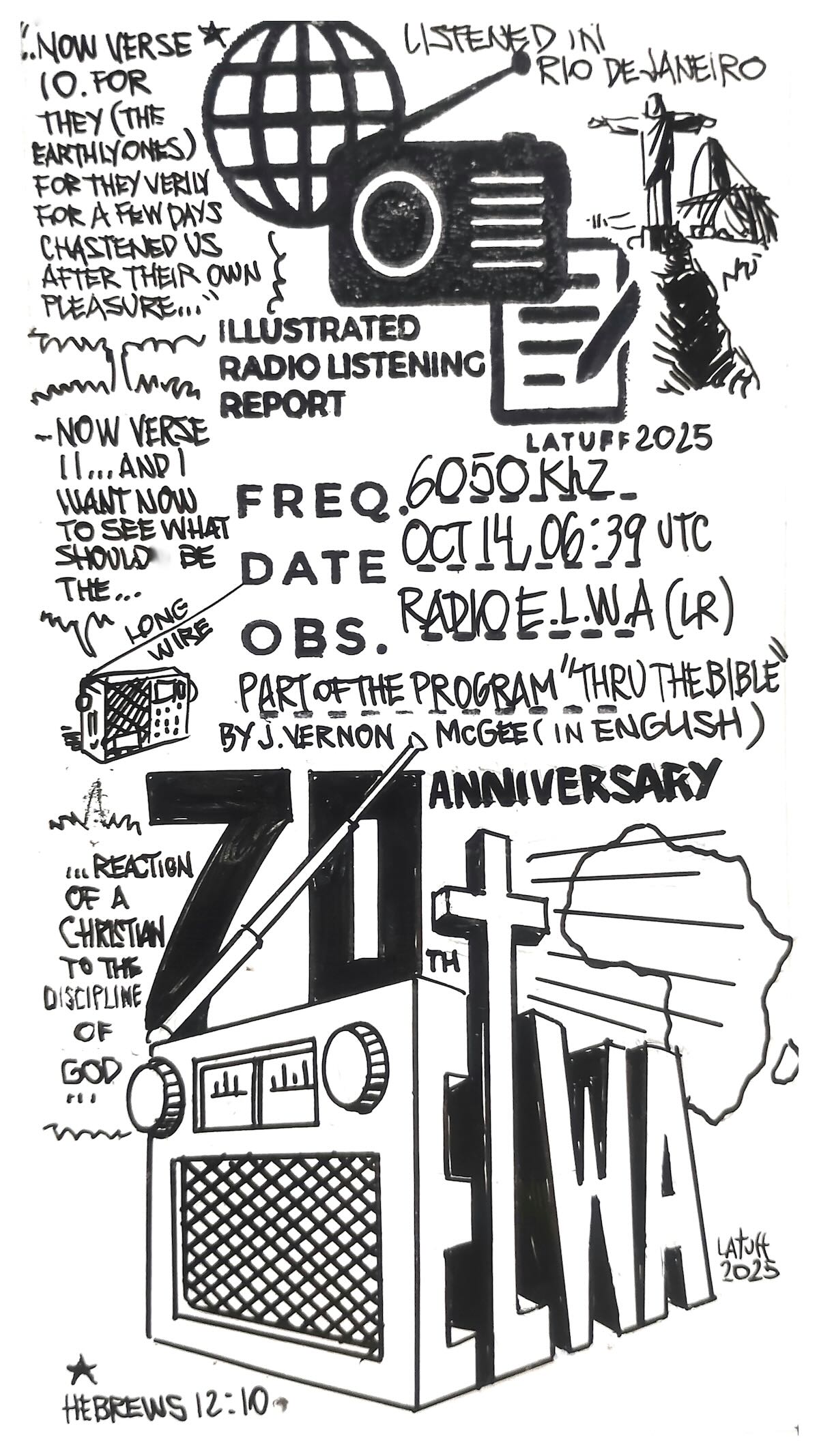 Carlos’ Illustrated Radio Listening Report and Recording of Radio ELWA (October 13, 2025)