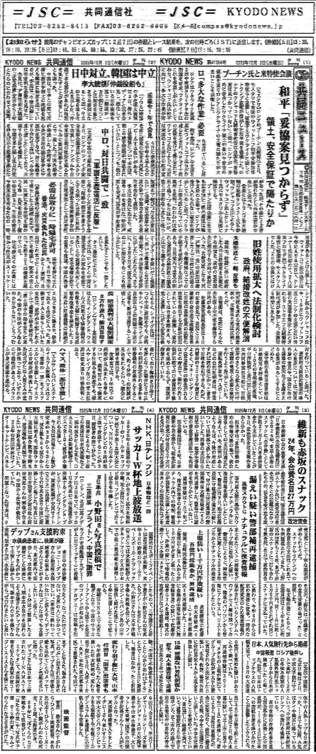 Kyodo News Morning Edition, radiofax received in Porto Alegre (Nov 25)