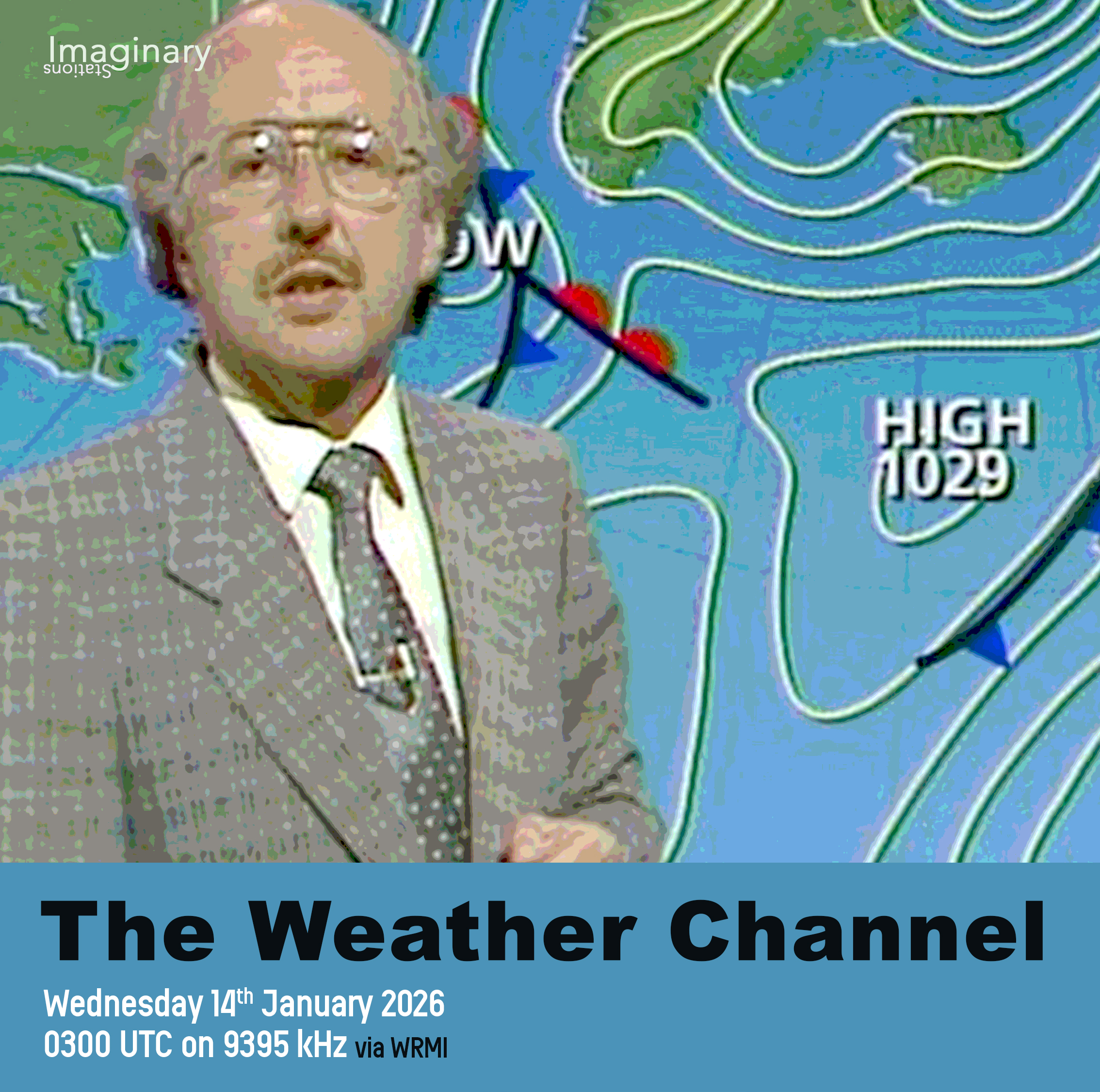 And on Wednesday 14th January 2026 at 0300 UTC on 9395 kHz via WRMI we bring you The Weather Channel, a programme which features the joys of meteorology. So have your weather vane wired up as your antenna and keep a look out for strange cloud formations while tuning into The Weather Channel.